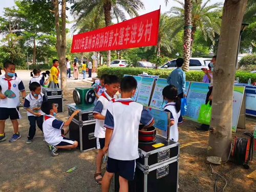 4月23日,由惠州市、惠阳区科协和永湖镇人民政府共同主办的2021年惠州市、惠阳区文化科技卫生“三下乡”活动启动仪式暨科普集市活动在亚维浓生态园科普教育基地举行。惠州市科协主席费霞、副主席柯世骠,惠阳区委常委、宣传部部长、区政府党组成员徐巧玲,区科协党组书记林庆财、主席叶慧莲,永湖镇党委副书记、镇长邓海林及各县区科协主要负责人,各镇(街道)科协主席、秘书长,科普先进单位代表,市、区各协会、学会和各相关部门科普志愿者,永湖镇干部群众及学生代表等300多人参加了活动。