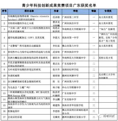 惠州市参加第三十二届全国青少年科技创新大赛取得优异成绩