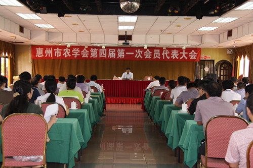 2014年6月17日,惠州市农学会在惠州宾馆召开第四届第一次会员代表大会,来自农业科研院校以及各农业龙头企业和各县区农业推广部门共93名会员代表参加了会议。惠州市农业局、市科协、市科技局、市海洋与渔业局、市林业局、市社会组织管理局等单位领导出席会议。