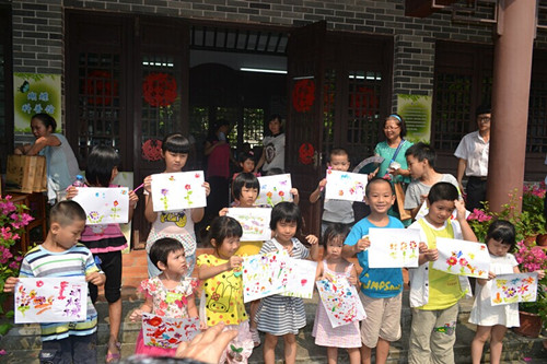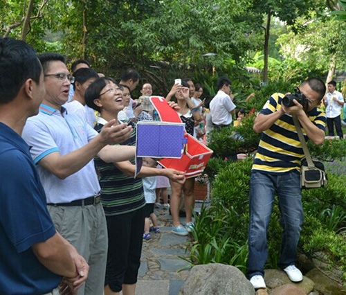在放飞蝴蝶的环节,几十个小朋友在景区导游们引导下,一起放飞蝴蝶。上百只蝴蝶在孩子们的欢呼声中飞向空中,又盘旋着落在花丛里。