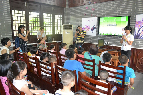 接下来,孩子们坐在蝴蝶馆里听景区导游姐姐讲解《蝴蝶的自介绍》。黄宗太副主席等领导也与小朋友们一起听课。科普课程中孩子们互动热烈,不但认识了蝴蝶,还认识到要保护环境。