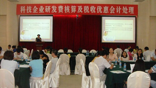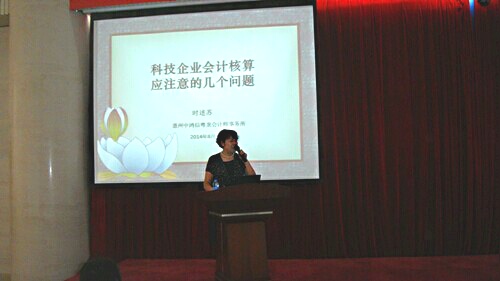 8月21日下午,由惠州市科协主办,惠州市科技咨询服务中心、市高新技术产业协会承办的《科技企业研发费核算及税收优惠会计处理》讲座在惠州科技馆三楼举行。讲座邀请了惠州中鸿信粤龙会计师事务所时述苏高级会计师主讲,时会计师是中鸿信粤龙会计师事务所、惠州粤龙税务师事务所、广东龙源司法会计鉴定所合伙人,兼任中国注册会计师和司法会计鉴定人。来自惠州TCL集团技术中心、广东九联科技股份有限公司、惠州东江环保技术有限公司等35家科技企业的60名财务骨干人员参加了讲座学习。
