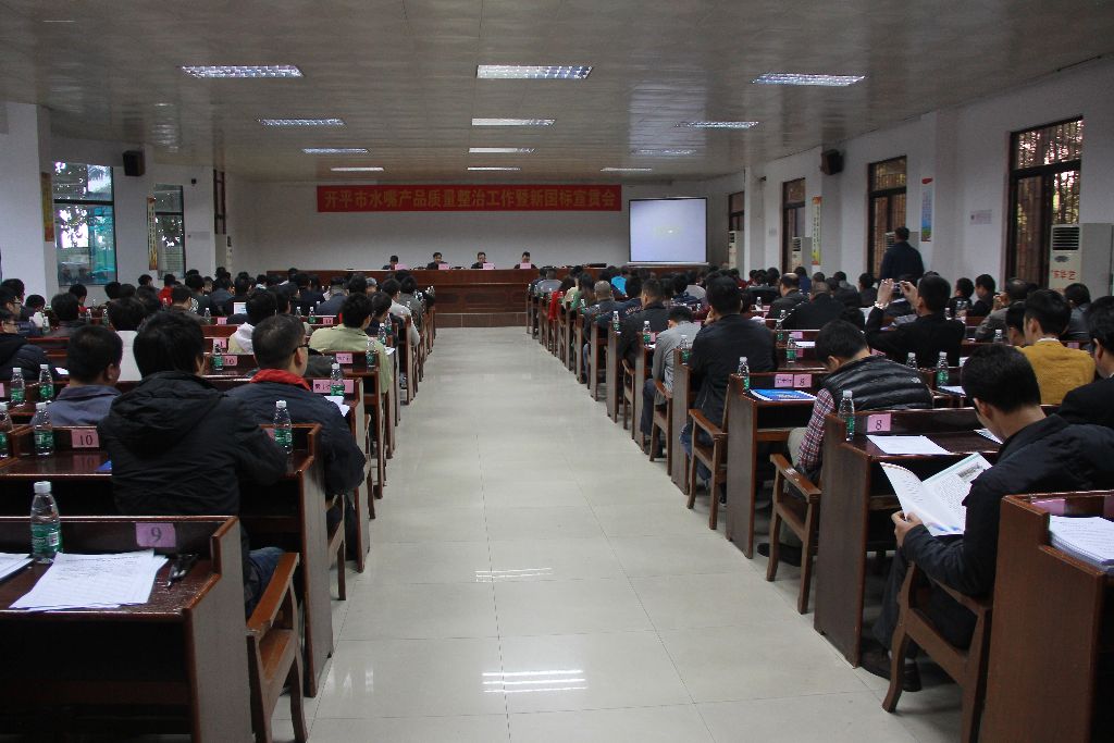 江门市质量检验协会受市质量技术监督局委托,联合开平市水暖卫浴五金行业协会,于12月3日在开平市水口镇举办水嘴产品质量暨新国标宣贯会。会议既学习贯彻省市质量技术监督局落实水嘴产品质量整治工作并贯彻实施强制性国家标准GB18145-2014《陶瓷片密封水嘴》(简称新标准)的要求,又有助于强化中小微型企业管理人员的质量意识,促进水暖卫浴企业产品质量不断提高。江门市质量技术监督局副局长郑岳剑、开平市委副书记谢鸿猷出席会议并致词。开平市水口镇区域的(原材料、半成品、成品)加工生产企业代表200多人参加会议。