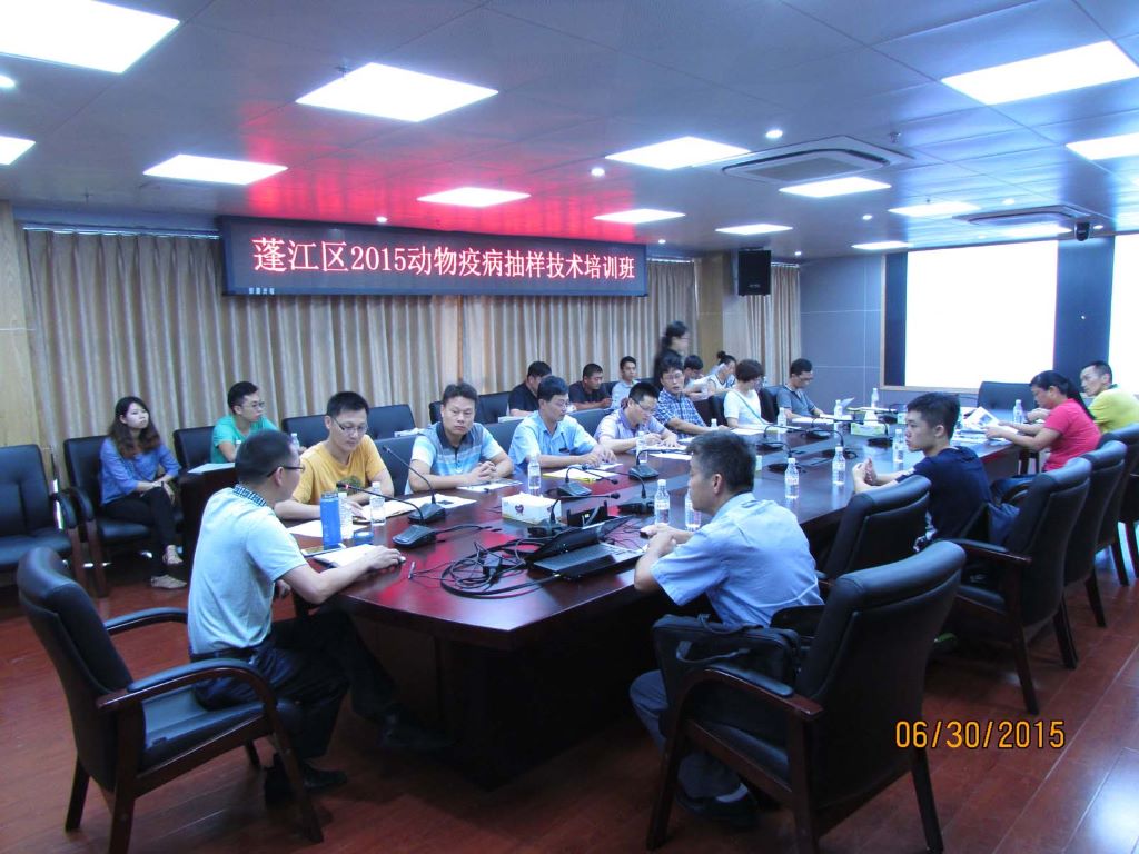 江门市畜牧兽医学会为提升畜牧兽医系统基层人员技能,配合蓬江区农业局工作部署,于6月30日在区动物疫病预防控制中心2015年蓬江区动物疫病抽样技术培训,组织镇(街)畜牧兽医站人员30多人参加培训。市畜牧兽医学会选派冯开容高级畜牧兽医师、曹建伟技术人员等授课。