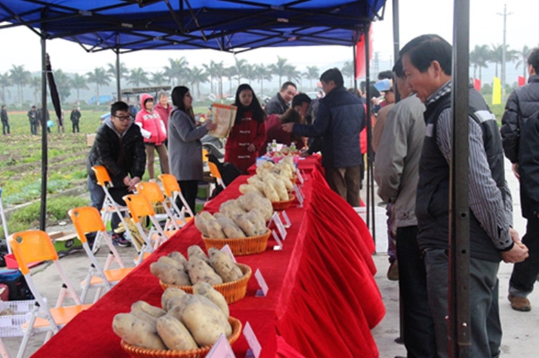 据介绍,经过多年的打造,牛江镇马铃薯产业得到长足的发展,发展势头强劲,规模化、集约化、机械化得到很大的发展。近年,推动全市冬种马铃薯面积稳定在4万多亩,已成为仅次于惠东县的广东省内一流马铃薯生产基地,也由此而成为农业部马铃薯产业技术体系新品种、新技术示范县之一,马铃薯产业的优势有目共睹。在现场不仅有马铃薯收获现场和产品展示,还提供新鲜出炉的马铃薯供与会人员品尝,充分展现了当地农户对自己马铃薯种植技术和产品质量的信心。为恩平市马铃薯全面畅通销售渠道打下重要的基础。