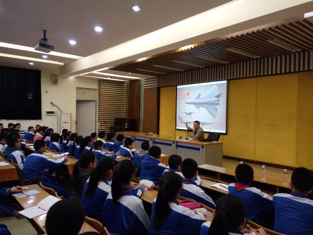 在怡福中学,“你知道吗?有CCTV特约军事评论员、军事专家陈洪爷爷来到我们这里”,同学们都在兴奋讨论着。陈洪研究员以他京味十足且通俗诙谐的语言,为师生们带来一场题为《军用飞机与现代空中作战》的军事题材科普报告,其中既有对历史的回顾,更有对未来的期待。