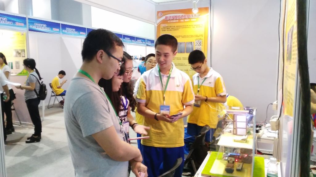 据了解,本次大赛有来自全省各市及港澳地区共有480余件优秀作品参加,共评选出38个金牌。江门市怡福中学有5个作品进入本次决赛。在封闭答辩现场中,选手们沉着应对,娴熟的操作,精准回答专家评委的提问,受到评委的一致好评。该校冯冠荣同学的《汽车电瓶健康状态实时监测仪》荣获金牌和专利鼓励奖,冯子烨同学的《基于GSM的一站式智能家庭》获得银牌,张许进、赵嘉禧的作品《一种可水平多方位移动摄影架》和石弢、李显伦、陈伟宁的作品《防烫手推拉卸物烧烤叉》均获铜牌,该校梁东沃老师荣获优秀辅导教师奖。
