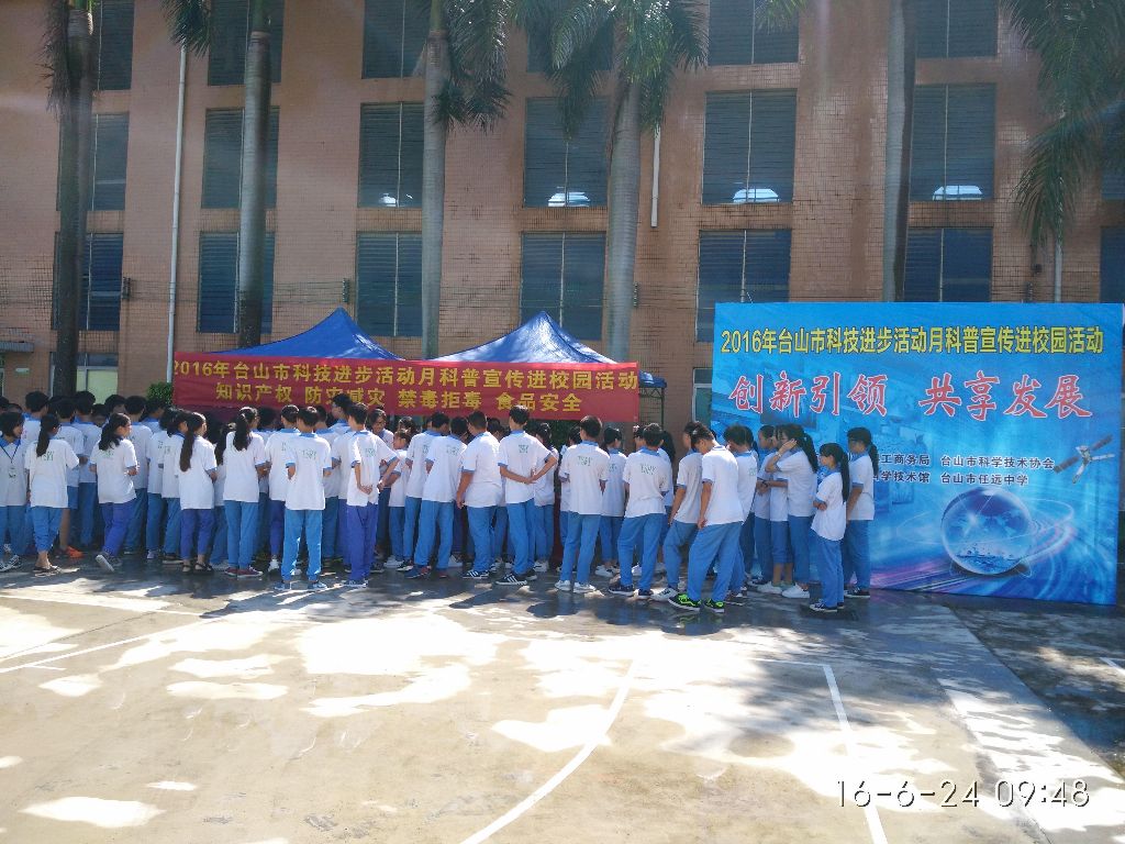 在任远中学校园广场,参加活动的2000名师生,有的前往防灾减灾、知识产权、禁毒拒毒和食品安全等现场咨询,有的走向科普知识有奖问答现场“抢题答题”,热闹非凡。同学们说,科普进校园活动给了我们科学知识开通了一条捷径,搭建了传播科普知识的良好平台。同时,现场派发防灾减灾、知识产权、禁毒拒毒和食品安全等科普资料2000多份。至此,台山市科技进步活动月暨科普进校园活动在任远中学落下帷幕。