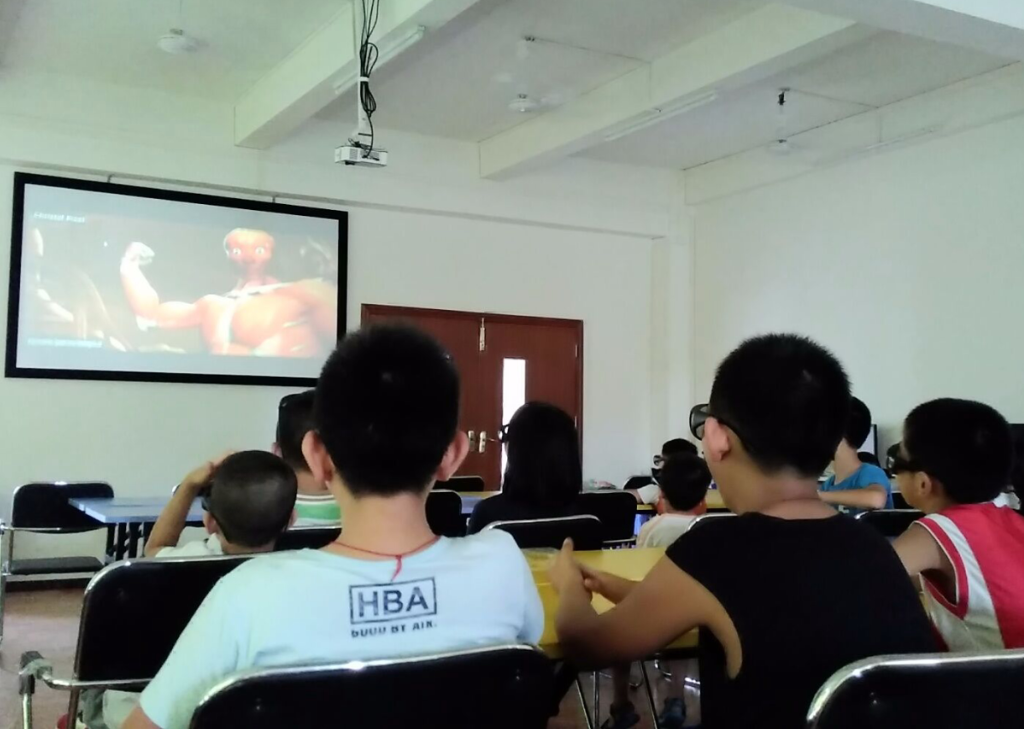 图为学生们观看3D科普片