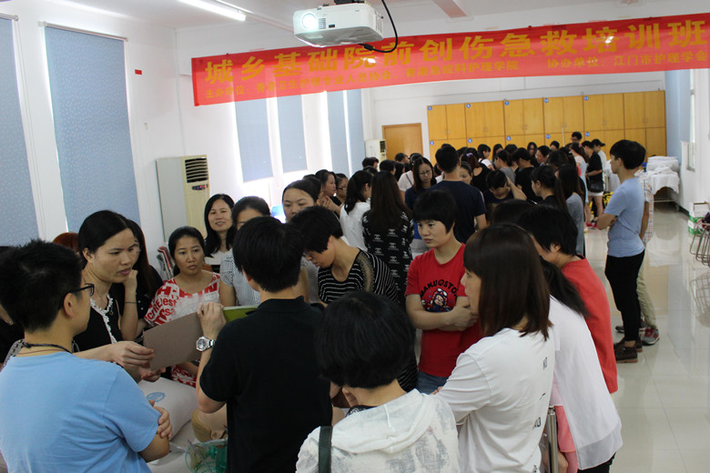 江门市护理学会为提升城乡医护人员院前急救水平,提高基层院前创伤急诊、急救能力,联合香港卫生护理人员协会(HKHCP)、香港急症科护理学院,于9月3日下午在市中心医院举办“城乡基础院前创伤急救课程”培训班。来自全市60家基层卫生医疗单位的护理人员参加了本次的培训。市护理学会理事长陈玉珍在开班仪式致辞,市护理学会秘书长黄静主持培训课程。