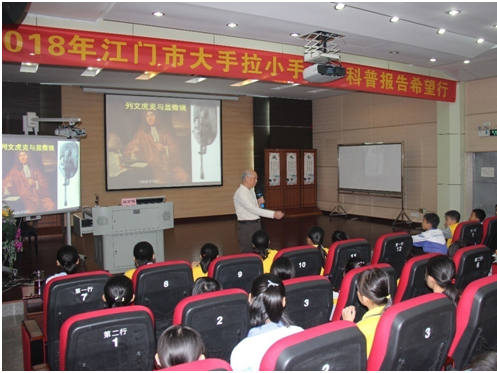 3月14日上午,在江门市蓬江区丹灶小学迎来了“2018年江门市大手拉小手-科普教育希望行”活动,中国科学院微生物研究所研究员、著名微生物学家孙万儒教授走进学校报告大厅讲授《微生物世界真神奇》讲座。400多名师生们面对面、近距离聆听科学家演讲,气氛热烈,既感受到科学知识与生活的密切相连,又感受到了科学的魅力。