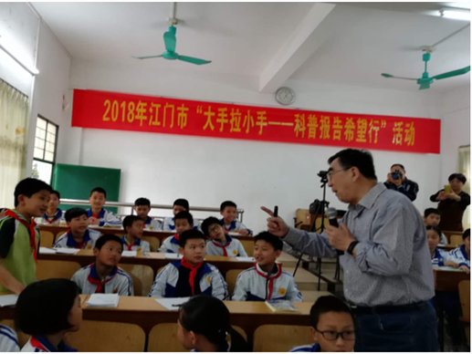 3月14日下午,2018年江门市“大手拉小手-科普报告希望行”活动走进了江海区新联小学,中国科学院老科学家科普演讲团副团长、中国地震局徐德诗研究员为学校200多名师生们作了“你做好灾害应急准备了吗?”主题的科普讲座,为师生们带来一场科普“盛宴”。通过讲座,增强了师生们的安全防范意识,让他们真正掌握在自然灾害面前迅速逃生、自救、互救的基本方法,提高了他们抵御和应对自然灾害的技能技巧应急能力,达到了预期的目的。