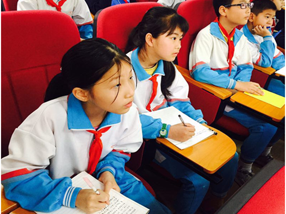在互动环节,张德良教授提出了许多问题,如“陨石坠落为什么会燃烧发光?”、“为什么会爆炸破裂?“”“避免陨星撞地球的方法是什么?”等,由易到难地引导同学们运用学过的科学知识进行概括,同学们积极参与,争相提问,场面十分热烈。科学家赞赏地说:“滘头小学的同学真了不起,是最棒的。”同时,他还为学生代表颁发了中国科学院的院徽,同学们脸上幸福的笑容,引来了大家阵阵羡慕的目光。
