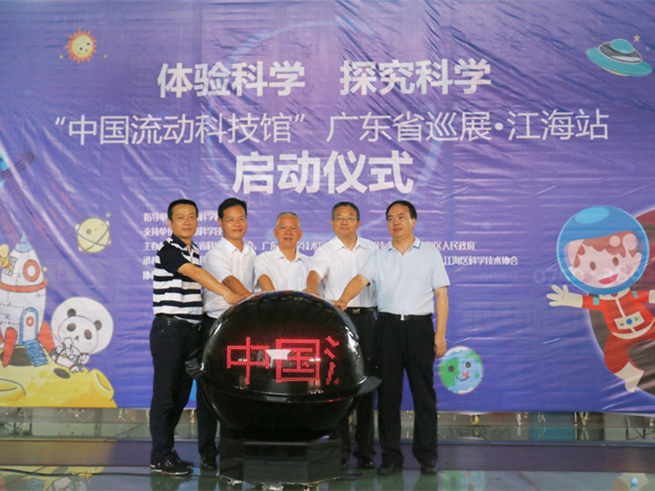 7月10日上午,“中国流动科技馆——广东省巡展·江海站”启动仪式在江门演艺中心举行。本站巡展是由广东省科协、省科技厅、江门市科协和江海区人民政府联合主办,广东科学馆、区科技局、区科协、区教育局等承办的。当天省科协党组成员、专职副主席吴焕泉,江门市科协主席吴森,江海区区长劳茂昌等主要领导出席并进行启动;同时,参加启动仪式还有省科协及有关兄弟地市科协、江海区相关部门的领导嘉宾、江海区华兴小学师生,以及新闻媒体等超过300人。