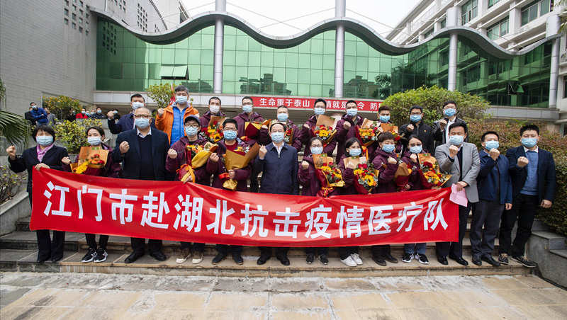 疫情就是命令。江门市接到广东省卫健委的援鄂指令后,各指定医疗单位迅速响应,快速集结,短短两小时有近400名护士请战,全市近1500名护士报名援颚。据广东省卫健委数据,截至2月21日,江门市于2月9日、11日、14日相继派出48名医护人员奔赴荆州,其中31人为护士,占江门援鄂医疗人员65%,分别来自江门市中心医院、江门市五邑中医院、江门市人民医院、开平市中心医院、台山市中医院、台山市人民医院、恩平市人民医院、江门市五邑中医院恩平分院、鹤山市中医院、鹤山市妇幼保健院、鹤山市沙坪街道卫生院、新会区人民医院、新会区中医院及新会区第二人民医院等14家医院,涵盖重症医学科、急诊科、呼吸科、心血管科、神经科、妇科、普外科、泌尿外科、血透、康复科及手术室等专科,此外全市各医疗单位尚有173名预备队员,整装待发,随时赴鄂。03年非典之战未曾退缩,如今我们再次踏上征程,为荆楚大地注入“江门力量”。