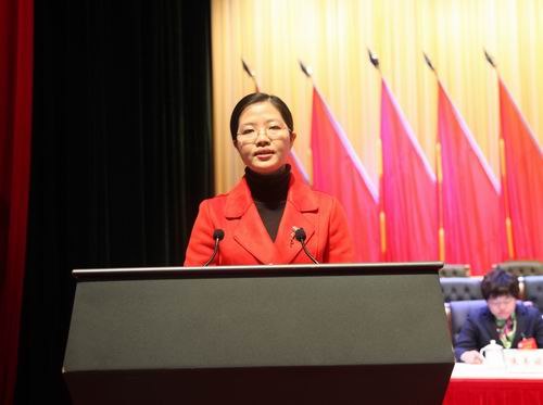 茂名市科协党组书记、主席黄少兰代表茂名市科协第七届委员会在会上作工作报告