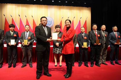 茂名市委常委、组织部部长、统战部部长陈小锋(左)为当选茂名市科协八届委员会主席黄少兰(右)颁发当选证书