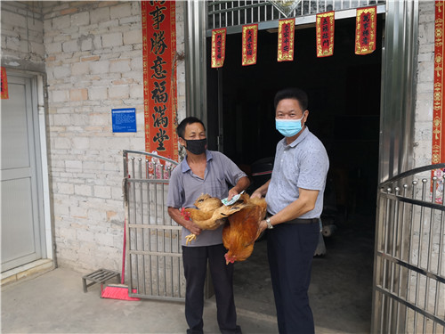 向结对帮扶户购买家鸡,推动消费扶贫工作