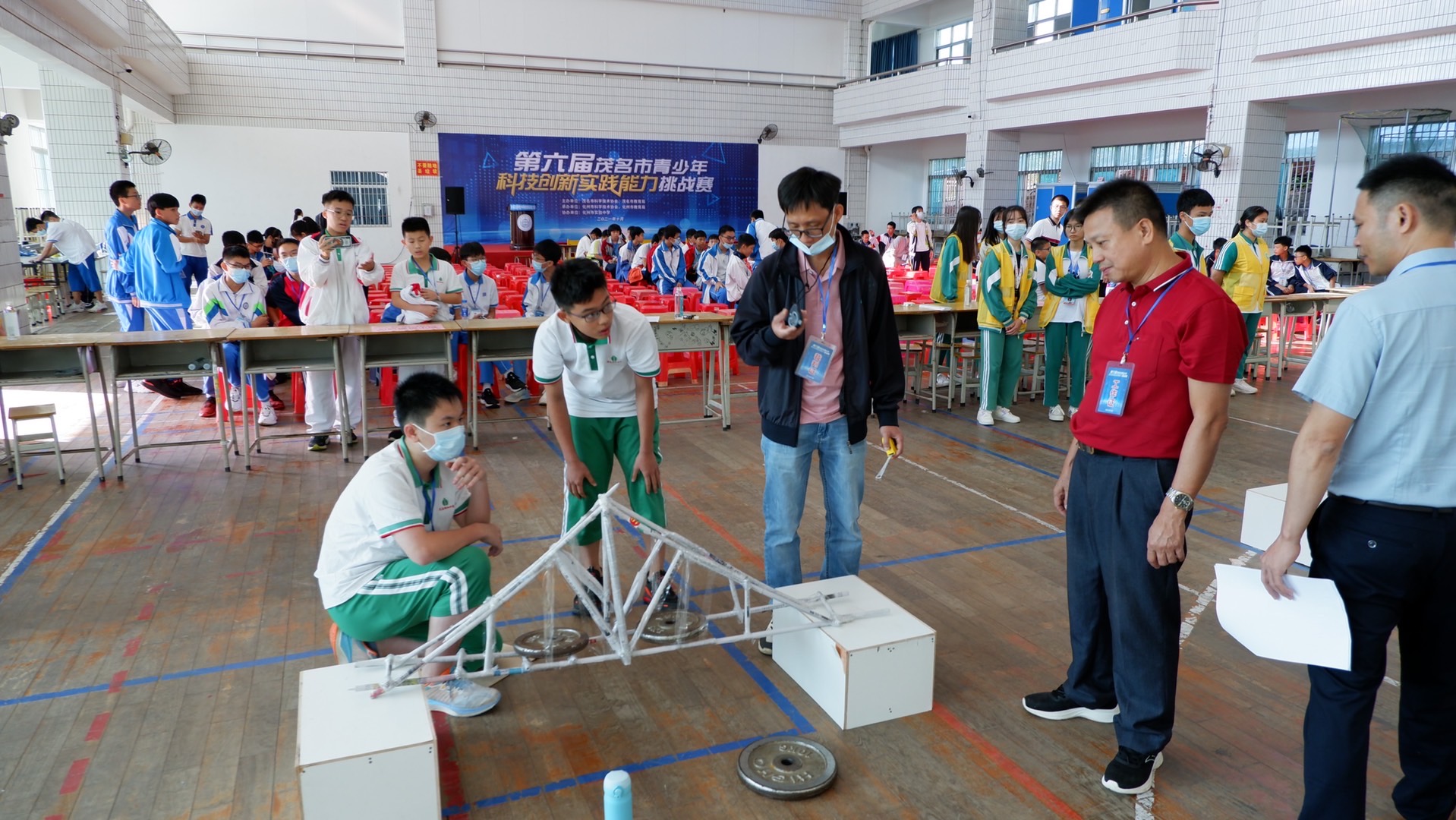 本次挑战赛以“挑战极限 纸论英雄”为主题,分设小学组“纸的力量——桥梁结构承重”,初中组“纸的力量——模型跨度”,高中组“纸的力量——模型跨度”,要求参赛学生团队现场利用废旧报纸制作纸质模型,以模型自身重量与承重比计比赛成绩。参赛学生在赛场上和队友团结协作,奇思妙想,挑战极限,充分展现了良好的竞技状态和精神面貌,赛出了风采,赛出成绩。在比赛期间,还举办了2021年茂名市青少年科技辅导员培训班,邀请专家作题为《科技创新大赛项目分析和辅导方法》专题辅导,200多名科技教师参加了培训,进一步了解科技创新大赛项目类别,找准辅导学生的方式和方法。