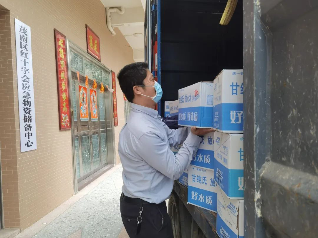 在募捐活动现场,茂名市健康管理学会理事长谭科颖见到茂南区红十字会工作人员人手不足,马上与工作人员一起将矿泉水、食品等抗疫物资搬进仓库,用行动诠释健康管理学会负责人全力抗疫的信心和决心。