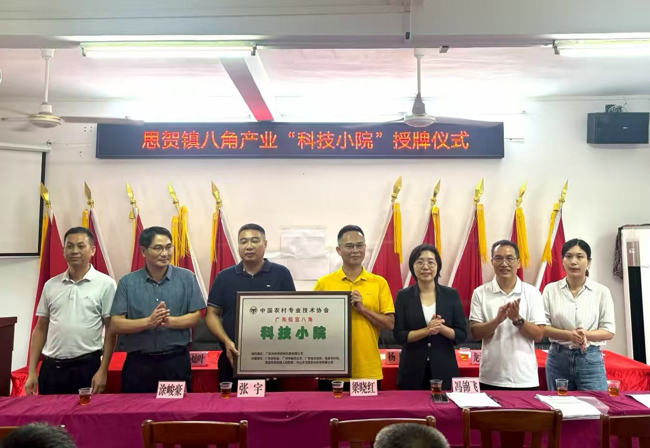 9月16日,省农技协、茂名市科协为信宜八角科技小院举行授牌仪式。此次仪式的举办标志着信宜市首个科技小院正式落地,当地八角产业也迈入“会校企融合、产学研合作”的发展新阶段。信宜市科协、广州中医药大学、思贺镇及广东先有林农林科技有限公司等单位代表出席仪式。