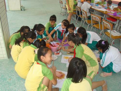 学生们进行“放飞中国梦”书画比赛