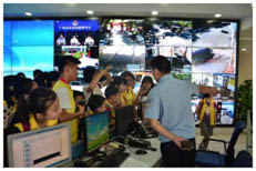 (图为参观110指挥中心并学习拨打“110”电话)
