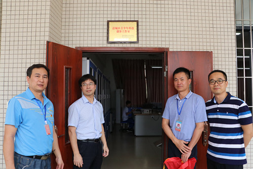 在为大观小学进行揭牌仪式后,蓝建飞一行参观了创客工作室,对大观小学重视创客教育、让学生体验科学的魅力,全面提高学生的科学素养表示了充分肯定和高度赞赏。