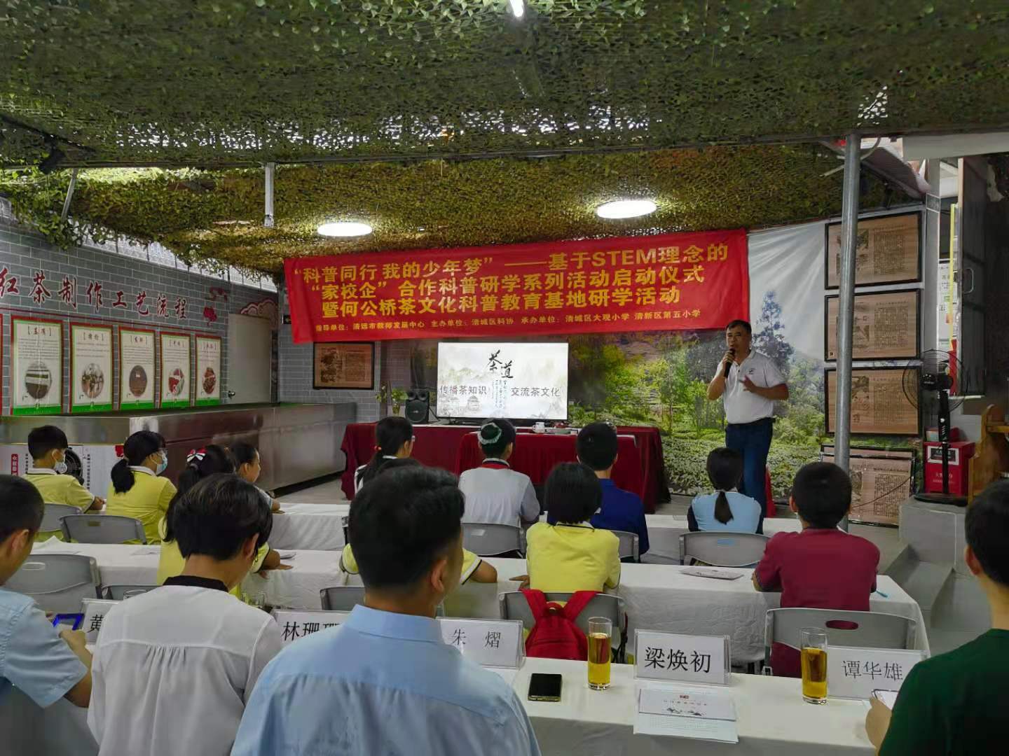 7月12日上午,由清远市教师发展中心指导、清城区科学技术协会主办、清城区大观小学和清新区第五小学承办的“科普同行 我的少年梦”——基于STEM理念的“家校企”合作科普研学系列活动启动仪式暨何公桥茶文化科普教育基地研学活动在清城区何公桥茶文化科普教育基地顺利举行。