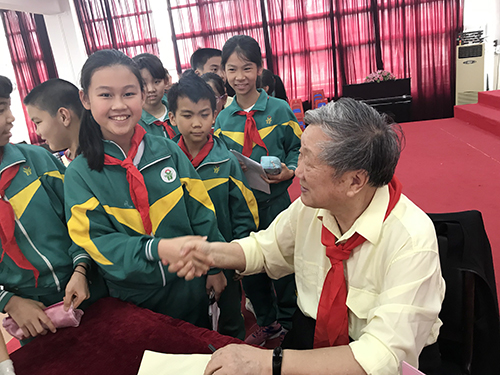 大手拉小手(陆龙骅教授为同济小学学生签名留念)