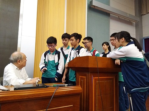 师生们跟随着老科学家们生动有趣的讲课,飞越太空,借“神奇的载人航天”,漫步“太空气象站”;从追寻远古 “恐龙足迹”到探访“南北极”、“地球内部”;从地球形成,到如何“守护地球”;从我们关心的“雾、霾与大气污染”,到 “南极臭氧洞与环境保护”;从世界非物质文化遗产24节气时间知识体系,到眼病防治新模式。师生们兴趣盎然,认真聆听;课后,科学家迷粉意犹未尽,争相请教并签名留念。