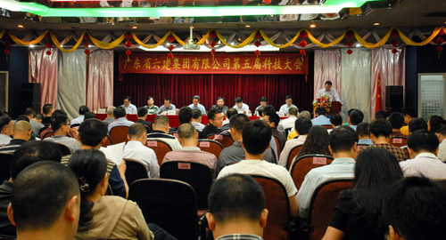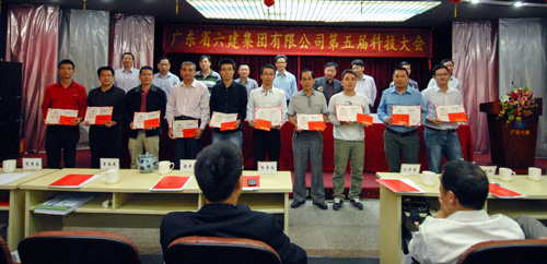 佛山市科学协会主席黄文,佛山市住建局副局长、总工程师方小兵,佛山市土木建筑学会秘书长曾小明,佛山市建筑业协会副会长兼秘书长姚毅文应邀出席了会议。集团公司领导、各分司经理、技术负责人、技术部长以及受表彰的科技成果、优秀论文获奖者等130多人参加了会议。大会由集团公司副总经理游永忠主持。广东省集团公司副总经理、科协副主席陈景辉在会上作了科协工作报告,回顾了2006年以来的科技成绩,提出了集团公司未来科技创新工作的设想。第四届科技大会以来,广东六建积极研发新技术,其中“风荷载及温度作用下的复杂造型钢结构及幕墙体系施工技术”、“佛山市中医院医疗综合大楼工程建设关键技术的研究与应用”、“文物建筑修缮关键技术研究与应用”三项科技成果获得了全国、省市等级多项科技奖项。近七年,广东六建已获得国家知识产权局颁发的发明专利4项,实用新型专利1项,广东省省级工法11项,广东省建筑业协会优秀QC小组成果一、二等奖17项,中国建筑业协会优秀QC小组活动成果二等奖8项 ,鲁班奖、钢结构金奖、国家优质工程、全国建筑工程装饰奖各1项,广东省建筑工程优质奖15项,广东省市政优良样板工程2项,佛山市市级优质工程奖36项。