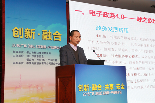 佛山市经济和信息化局副局长谢国高做“佛山市互联网+政府”主题演讲