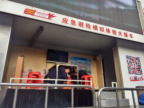 活动当天,为了增加互动体验,让职工们能更深切地掌握各种救灾知识,佛山市防灾减灾协会把防灾救灾公益宣传大篷车开进了夏南车辆段进行现场讲解。应急避险模拟体验大篷车内藏玄机,可以提供各种应急模拟体验,如地震、火灾等突发事件的逃生体验。此外,大篷车小讲座还向职工们介绍如何做日常家庭隐患排查,找出安全隐患点,并对存在隐患的地点进行标识、整改,遇到紧急情况的急救方法,如头部止血包扎法,手腕包扎法,如何使用灭火器,心肺复苏法等简单易用的知识。