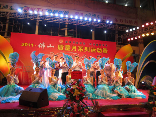 2011年9月29日晚,佛山质量月系列活动暨文艺晚会在东方广场隆重举行。本次活动由佛山市质量管理协会主办,出席晚会的有市委、市政府、市经贸局、市质监局、市科协等单位领导以及企业代表等。首先,佛山市政府副秘书长周文和市经贸局李德先后为本次活动致辞。