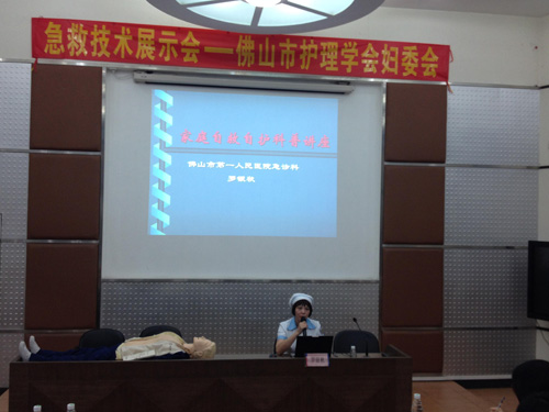 10月14日下午,由佛山市护理学会妇委会组织的“心手相传•健康同行”急救技术展示会在佛山南海信息技术学校举行。会议旨在提高广大人民的急救能力,普及急救知识,在紧急情况发生时,能够懂得自救和施救。展示会由佛山市护理学会急诊专业主任委员、佛山市第一人民医院急诊科护士长罗银秋进行了徒手心肺复苏、异物卡喉、现场止血包扎这三个急救技术知识的讲解以及急救小组成员作现场操作示范。