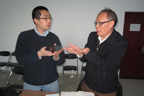 何志博士(左)在介绍他的产品和技术