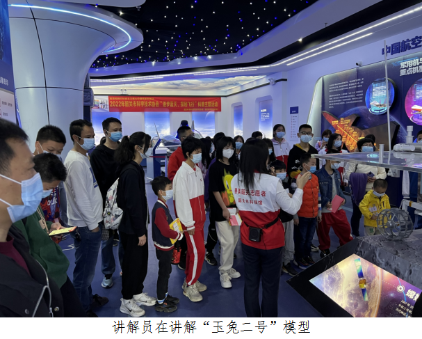 第二个环节是在科普讲解员的带领下参观航天航空展厅,科普讲解员将我国航天事业发展史娓娓道来,学生们在认真聆听,讲解过程中科普讲解员积极和学生们进行互动。科普讲解员对“玉兔二号”、“天宫一号”等航天航空模型进行深入讲解,让学生们更真切的感受到我国航天事业发展从无到有、从有到强的显著变化,学生们对此感触很深。在讲解完毕后,学生们在科普志愿者的引导下有序的进行航天航空VR沉浸式体验,通过头戴式的VR设备,切身体验到“重返地球”、“登月”、“飞越中国”等一系列的VR项目,学生们反响热烈,纷纷表示获益良多。