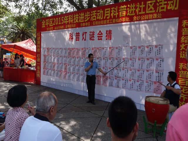 活动现场还组织科普灯谜竞猜活动,吸引了众多灯谜爱好者和社区群众参与。灯谜竞猜区鼓声阵阵,答题声、喝彩声和掌声此起彼伏,金平区科协通过开展一系列主题活动,将科普和灯谜这种传统文化结合起来,以人民群众喜闻乐见的形式推行科普活动,增强了科普的互动性、趣味性,逐渐把科普灯谜树立为金平区科普精品活动。据统计,这次活动共派发了近5000份科普资料,参与活动的社区居民、青少年约3000人次。