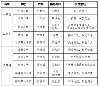 2020年龙湖区“弘扬科学战疫精神做新时代文明少年”演讲决赛获奖名单