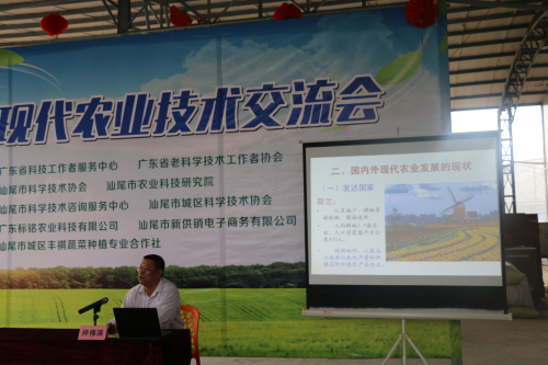 11月22日上午,在省科技工作者服务中心与省老科学技术工作者协会的大力支持下,由汕尾市科协与汕尾市农业科技研究院联合主办,汕尾市城区科协和汕尾市科技咨询服务中心承办的汕尾市现代农业技术交流会在汕尾市城区丰祺蔬菜种植基地举办。省委农办副巡视员、研究员许伟滨、华南农业大学教授谢文华,省老科技工作者协会副会长彭秀闩、汕尾市农业局总农艺师林俊流,汕尾市农业科技研究院院长李宏裕等五位专家应邀出席,汕尾市科协常务副主席范志能主持交流会。汕尾市各县(市、区)农技人员,种养专业户代表共50多人齐聚一堂,共同探讨现代农业的发展新思路和技术成果转换推广。