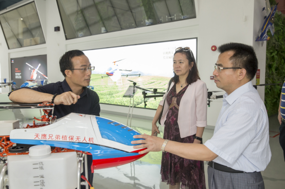 在参观走访中科飞测及博林文创时,冯日光一行深入了解了两家企业的基本情况、代表产品及发展前景,就企业各自在智能制造及文化创意方面所取得的成就表示肯定。在天鹰兄弟无人机公司,冯日光一行与中国科学技术协会九大代表、天鹰兄弟创始人李才圣亲切交流。李才圣带领省市科协领导参观了企业产品陈列厅、生产车间和测试中心。他表示,随着土地流转步伐加快,土地大量集中之后,对现代化智能农机的需求将越来越大,而植保无人机作业在工作效率、安全性、节约环保等方面均存在显著优势。冯日光一行对中科飞测、博林文创和天鹰兄弟在科技创新、文化传播、科学普及和公益培训上所做的努力表示衷心的感谢,并希望他们能够再接再厉,多出成果。