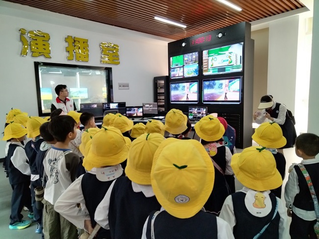 在罗定国家基本气象站观测场,工作人员带领孩子们逐一参观百叶箱、雨量传感器、风向风速仪等观测设备,细致讲解气象数据采集、传输、分析的全过程,让抽象科学变得直观可感。孩子们好奇观察、踊跃提问,现场气氛热烈。随后,师生走进气象影视室与会议室,化身“气象小主播”体验天气预报模拟录制,直观了解气象预报制作流程。科普人员还通过趣味实验、互动问答、案例讲解等形式,普及气象防灾减灾与极端天气应对知识,把专业气象知识转化为幼儿易懂、家长放心、生活可用的科普常识,实现寓教于乐、学以致用。