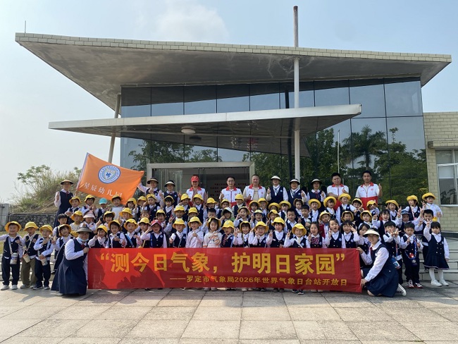 3月19日,在云浮罗定市科协指导下,罗定市气象局(广东省科普教育基地)围绕“测今日气象,护明日家园”主题,举办世界气象日台站开放日科普活动。罗定市黄羌星辰幼儿园70余名师生走进气象一线,近距离观测气象设备、沉浸式体验气象科普,在趣味互动中播撒科学种子、点亮“气象梦”。