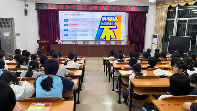 2026年3月24日,云浮罗定市科协联合罗定市市妇幼保健院在罗定市泷州中学为该校七年级女生开展了一场针对性强、实用性高的防性侵安全教育活动,以实际行动守护青少年健康成长。罗定市科协主席江滢及罗定市泷州中学副校长李哲聪等相关领导出席活动,罗定市妇幼保健院妇科主任医师赖坚受邀担任主讲。