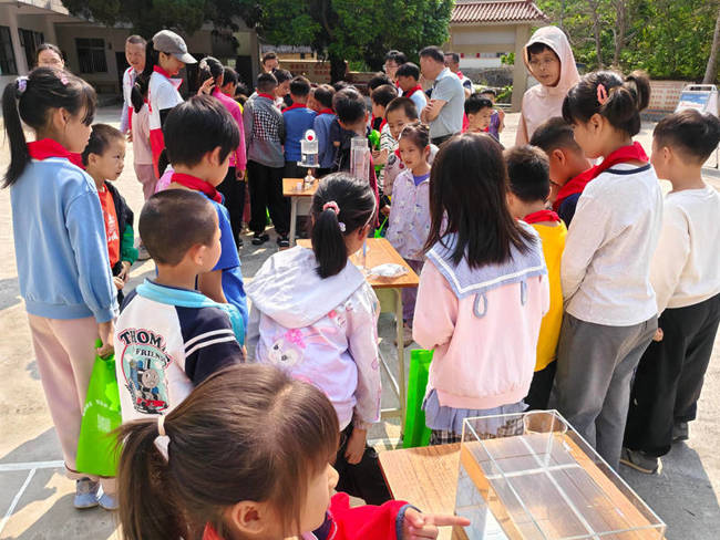 为让深山学子近距离感受科学的魅力,罗定市气象局全力支持本次活动,将气象科普展板、人工干预天气作业车、专业气象观测仪器等悉数带到教学点。孩子们在工作人员的引导下,有序观摩人工干预天气作业车,亲手操作体验各类气象仪器,参与趣味科学小实验,认真参观科普展板,近距离探索气象科学的奥秘。每一个体验环节都让孩子们充满好奇,眼中闪烁着对科学探索的渴望。活动最后,市科协联合市气象局、市知联会为全校每一位孩子都送上了文具礼包,用实实在在的关爱温暖老区学子,让他们在收获知识的同时,感受到来自社会各界的关怀。