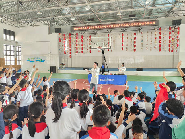 为提升青少年科技教育水平,夯实科技教育人才基础,3月20日,由云浮市新兴县科协、县教育局联合主办的新兴县2026年科学秀表演与创作培训交流暨青少年机器人竞赛科技辅导员培训班在新兴县惠能小学举办。来自全县各中小学近70名科技教师与辅导员,开启为期一天的集中“充电”,新兴县惠能小学近300名师生参加活动。