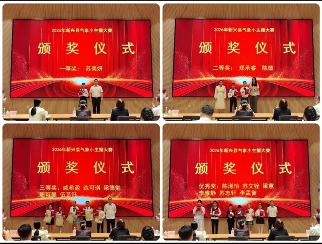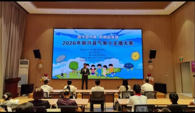 3月28日,云浮市新兴县气象局联合县教育局、县科协在青少年妇女儿童活动中心举办2026年新兴县气象小主播大赛。来自全县各个小学的21位气象小主播同台竞技,以少年之声传递气象科学魅力。