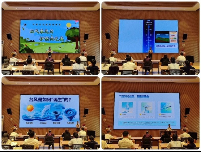 比赛现场,选手们围绕今年世界气象日主题“测今日气象,护明日家园”,从气象科普知识与科学实验展开精彩演绎,内容兼具实用性与趣味性,既涵盖台风、暴雨等本地常见气象灾害的防御要点,又包含雨的形成原理、“彩虹雨”等趣味实验演示,将抽象复杂的气象知识用通俗易懂、直观生动的方式表达出来,赢得了阵阵掌声。
