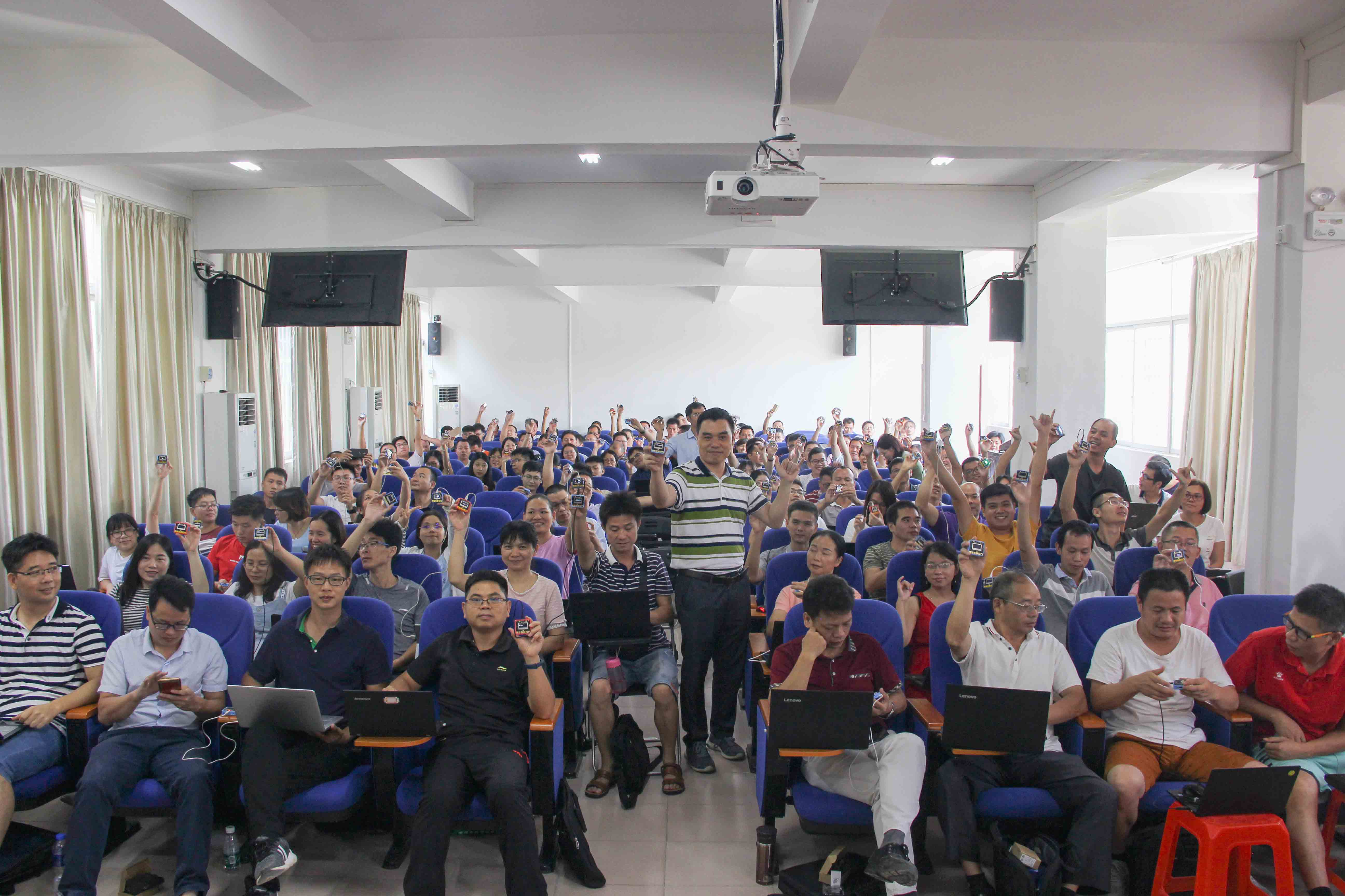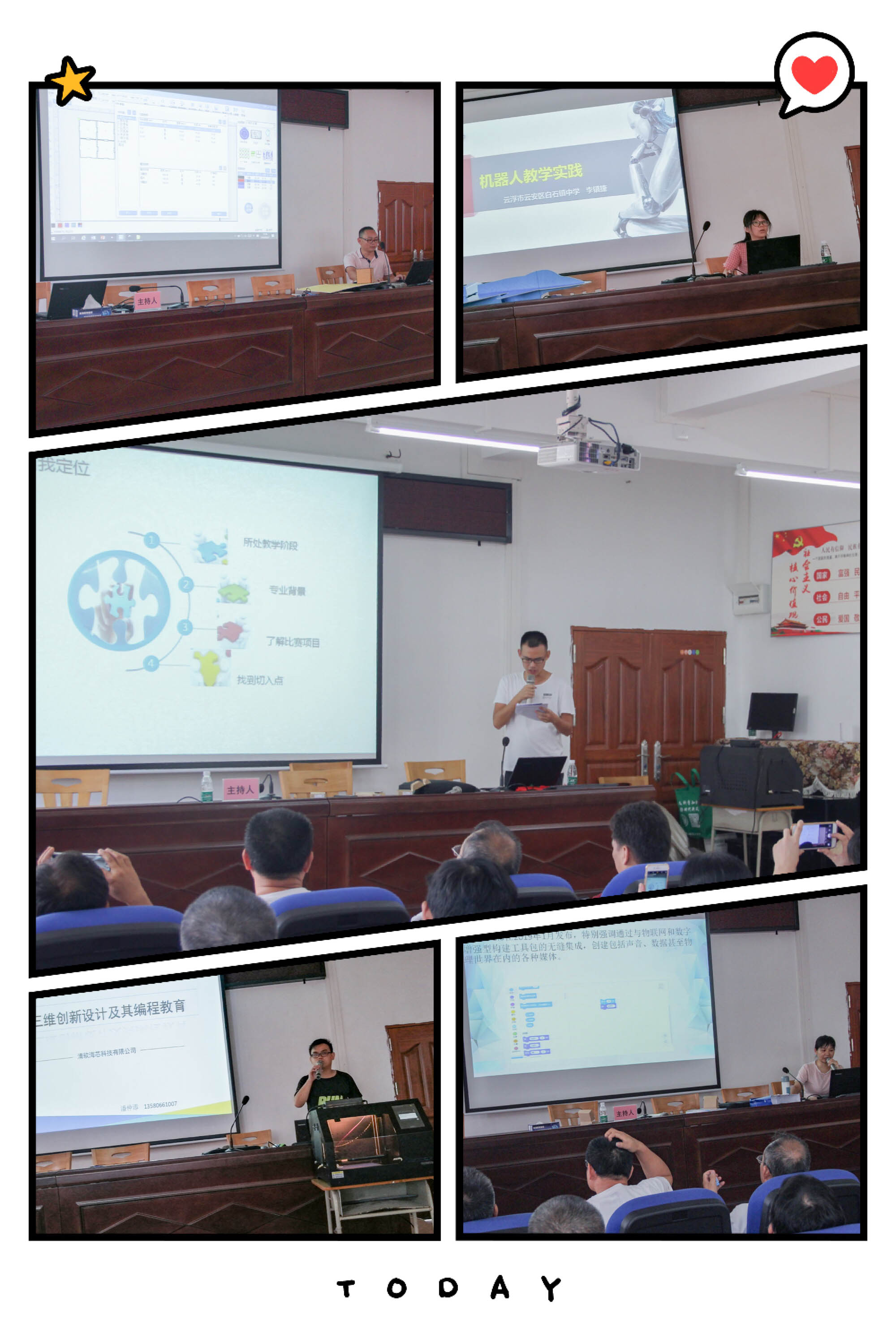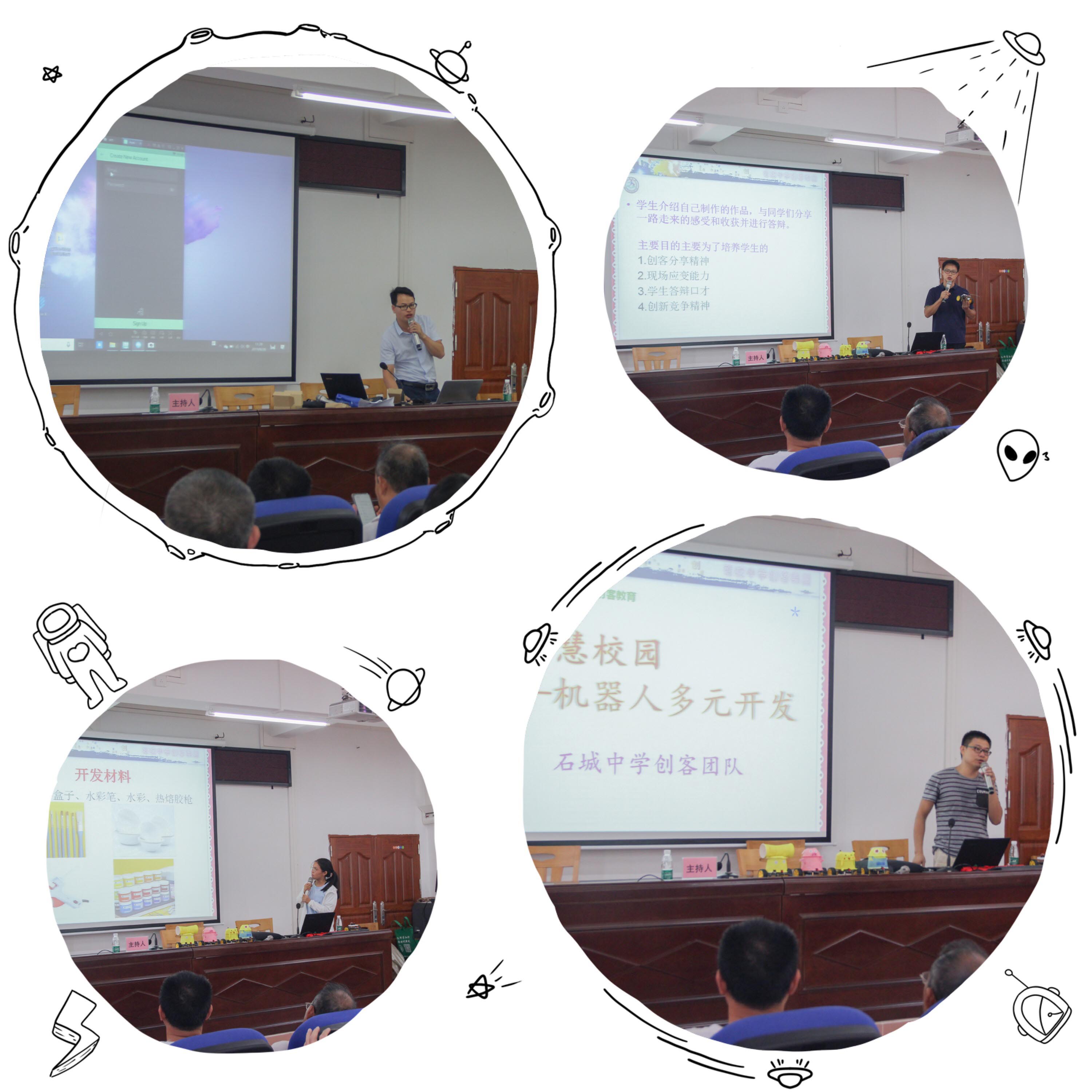 本次培训班邀请了佛山市南海区教育局的钟如光老师、南海区九江镇初级中学孙启富老师、南海区大沥实验小学莫志杰老师分别为大家作了人工智能探究与实践、创客—创意智造教学实践、创客魔方机器人教学实践方面的培训;本市部分优秀科技辅导老师在云安区教育局电教站黄金华老师的带领下也作了课程经验分享;来自云浮清软海芯科技有限公司潘仲添经理为老师们作了3D打印教育方面的讲解。